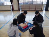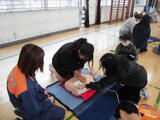 人形を使った胸骨圧迫の体験では、『強く・速く・絶え間なく』を意識しました。思っている以上に深く押し込む必要があり大変でした。