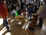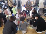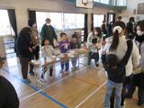 ベーゴマやコマの糸巻きが難しくて苦戦していた子供たちですが、ボランティアの方に糸を巻いてもらったり、上手なお手本を見せてもらったりしていました。他にも、だるま落としやお手玉、あやとり、けん玉など、遊び方を教えてもらっている子供たちはとても楽しそうでした。
