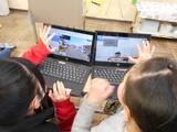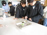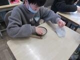 これまでの季節と比べて、植物や動物のようすはどうなっているのかを観察しました。校庭や交通公園に行き、冬の植物や動物を写真に撮りました。池には、氷が張っていて、子どもたちがたくさん集まっていました。また、梅の木に芽が付いていたり、松の木にカマキリのたまごがあったりと、発見がありました。