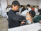 体育では、今、なわとび検定を行っています。得点表を確認しながら、さらに記録が伸びるように頑張っています。3人チームを組み、数を数え合いながら、互いに応援している姿も見られ、皆で頑張っています。来週も検定が続きますので、それぞれが自分の目標とする級になれるように、応援していきます。