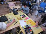 学年末になり、図工の授業で描いた作品や国語の授業で書いた詩や習字などの作品を整理しました。そして、それを持ち帰る作品バッグにイラストを描き、子どもたちは大きなキャンバスに思い思いの絵を描いて楽しんでいました。作品バッグには、4年生の思い出がたくさん詰まっていました。ご家庭でも、子どもたちが描いた作品をご覧になってください。