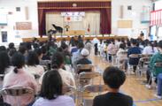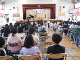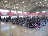 全校児童・教職員で体育館に集まり、着任式と始業式を行いました。