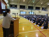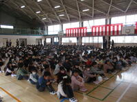 不安と期待を抱きながらも元気にあいさつを交わしながら、子どもたちは新しい教室に向かいました。健康観察を行った後に、全校児童・教職員で体育館に集まり、着任式と始業式を行いました。