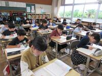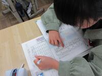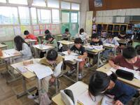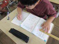 算数では、データを分類して表にまとめる学習をしました。教科書に載っているけがをした学年、場所、時間などのデータから自分で2つを選び、表にしました。落ちや重なりがないように「正」の字を使いながら、一生懸命に取り組んでいました。