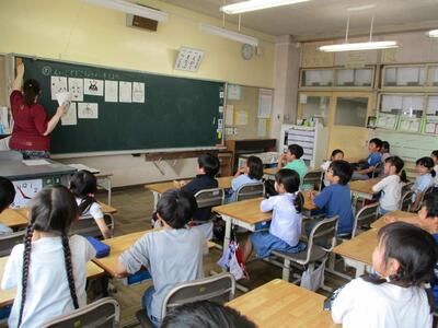 2年生になって初めての外国語学習では、英語で自己紹介をしました。
