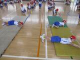 1年生は、体育でマット運動遊びが始まりました。丸太転がりや側転などから始まり、これから他の技にも取り組む予定です。どの子も一生懸命に練習したり最後のポーズを決めたり、とてもすてきです。