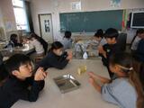 理科では、初めて理科室に行って学習しました。理科室や理科準備室の中を探検し、どこにどのような実験器具があるのか興味深々で見ていました。