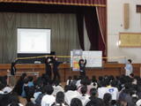 「消火器の正しい使い方を教えてください」「佐野市には、どれぐらいの人が消防団に入っているのですか」「女の人でも消防団に入れますか」など、児童は興味をもって様々な質問をしていました。