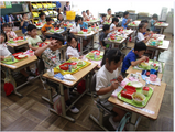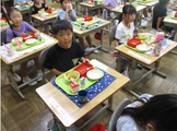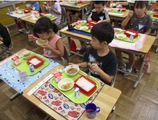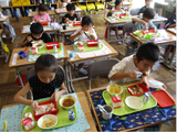 給食の時間も新しい班の当番で、素早く準備をしたりきれいに食べたりすることができていました。