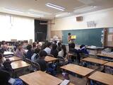 総合的な学習の時間に、社会福祉協議会の方をお招きして、車椅子体験を行いました。