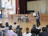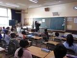 総合的な学習の時間に、「佐野市視覚障がい者鳩の会」の大月さんご夫妻をお招きして、視覚障がい者の日常生活や盲導犬に関する講話を聴きました。