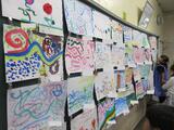 3年生 図工「絵の具と水のハーモニー」 投稿: HP担当 (17:57) 図工では、水の量を調整して、濃い色や薄い色を作って点や線を使って絵を描きました。今回は、それぞれが描いた絵を鑑賞しました。友達の作品を注意深く見る姿が見られ、互いのよいところを褒め合いました。 -