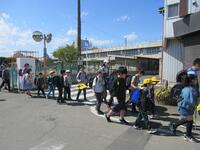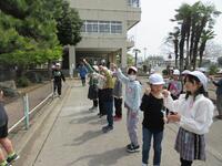 今年度最初の一斉下校がありました。一年生は、小学校で初めての給食がありましたが、時間に間に合わせて一生懸命に並んでいました。