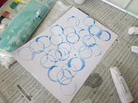 身近なものを使って絵の具遊びをしながら、作品を描きました。ビー玉を使って転がしたり、絵の具を垂らしてストローで吹いたりしながら模様を付けました。また、網とブラシを使って色を染めていく方法が大人気でした。