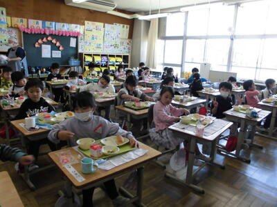 給食当番や係の仕事、お友達給食など、自分の役割を責任をもってやり遂げる姿は、1年生として大変立派でした。