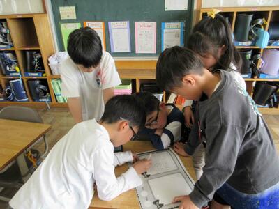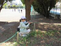 交通公園や校庭に出て、春の植物や動物を観察しました。子どもたちは、タンポポやドウダンツツジの花など、春に咲く花をよく観察したり、写真に撮ったりしました。理科の学習では、春・夏・秋・冬の季節でどのように木々や植物が変わっていくのか観察します。夏は、どのように変わっているのか楽しみです。