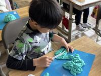粘土では、粘土と仲良くなろうという目標をもち、粘土が柔らかくなると、「仲良くなったよ!」と教えてくれました。