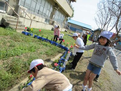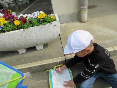 生活の時間には春探しをし、春の生き物や植物を見付け、触ったりにおいを確かめたりしながら楽しんでいました。
